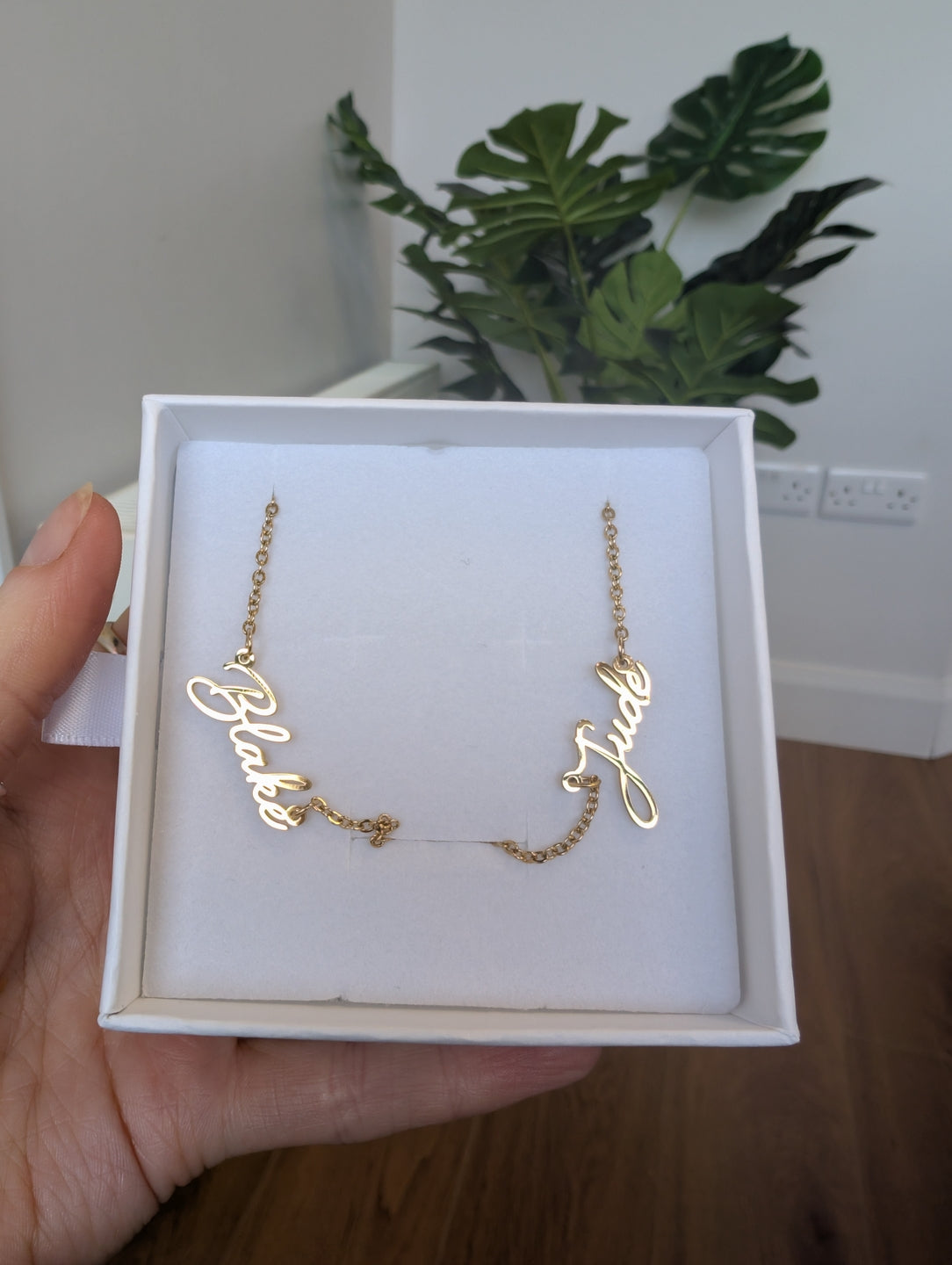 Each necklace features a personalized touch with your chosen name, beautifully crafted in elegant script. Carry a piece of who you are close to your heart, adding a meaningful and stylish accessory to your collection.
